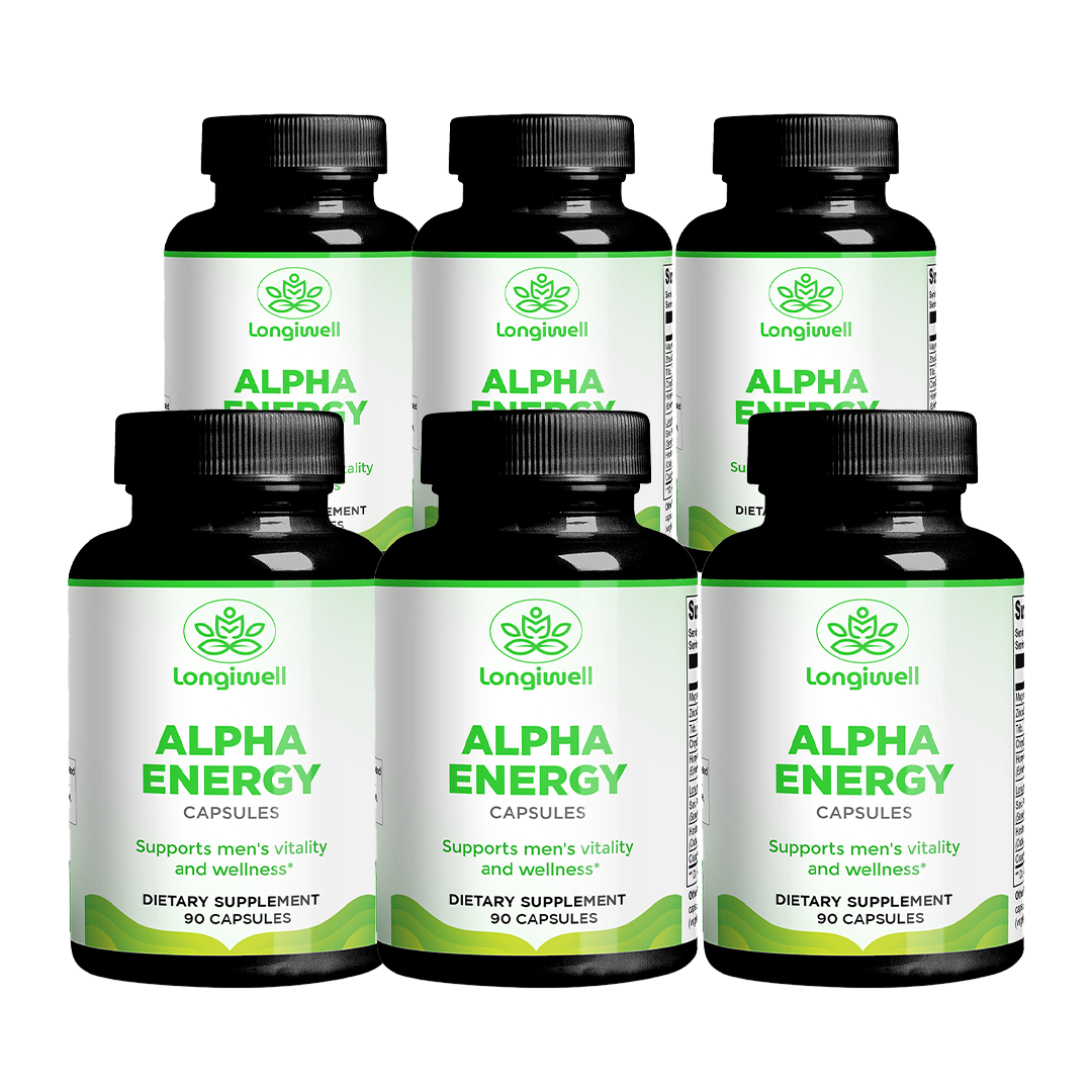 Alpha Energy Capsules are designed to enhance men's vitality and wellness. They support energy levels, muscle growth, heart health, bone strength, and libido, providing comprehensive support for overall well-being.